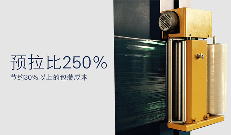 膜架为动力预拉伸机构,预拉伸可达250%,减少耗膜量