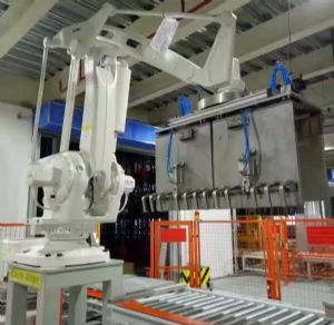 机械手码垛机适应于化工、饮料、食品、啤酒、塑料、空调等生产企业对纸箱、袋装、罐装、盒装、瓶装等各种形状的成品进行装箱和码垛。结构非常简单,容易保养及维修;主要构成零件少,配件少,所以维护费用很低;机械手码垛机可以设置在狭窄的空间,即可有效的使用;全部控制可在控制柜屏幕上操作即可,操作非常简单。可全天候作业,配备机器手可替代不少工人的工作量,由此每年能节省几十万的人力资源成本,达到减员增效!