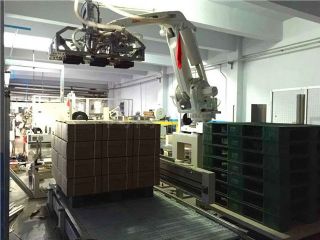 机械手码垛机适应于化工、饮料、食品、啤酒、塑料、空调等生产企业对纸箱、袋装、罐装、盒装、瓶装等各种形状的成品进行装箱和码垛。