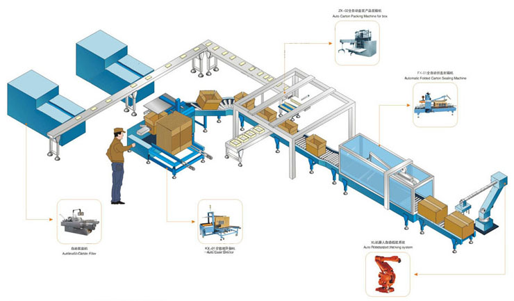 2.生产线中,进行装箱、码垛、拆垛作业的机器人码垛可以灵活布局,可以同时码垛两条线或者多条线是生产线末端进行码垛作业的理想之选。